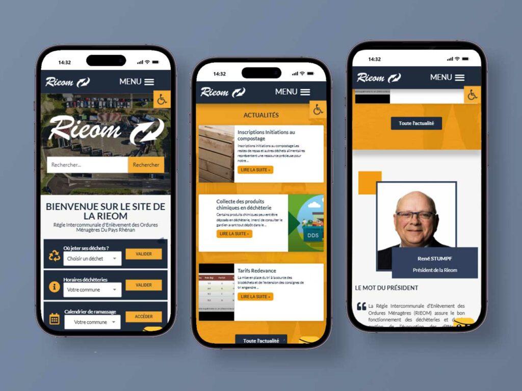 our le site de la Régie Intercommunale pour l’Élimination des Ordures Ménagères (RIEOM), j’ai participé à la refonte/optimisation du site avec une attention toute particulière portée à l’accessibilité numérique, en m’appuyant sur les normes du Référentiel Général d’Amélioration de l’Accessibilité (RGAA) pour assurer une navigation inclusive pour tous les utilisateurs.